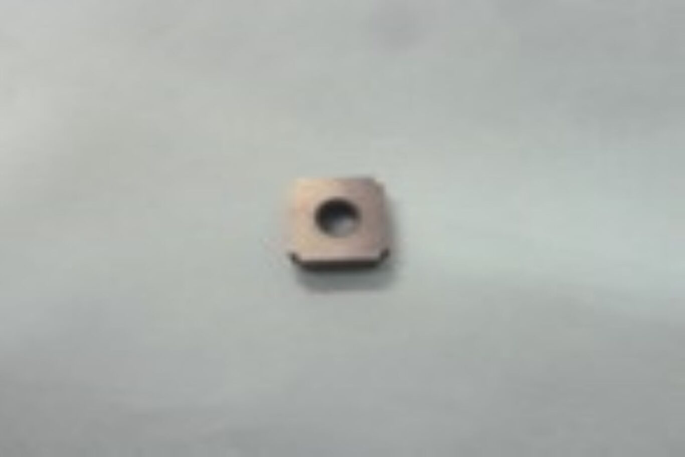 外径溝の面取りに使用されるチップで、4コーナー全て加工し使用できる仕様で製造しています。